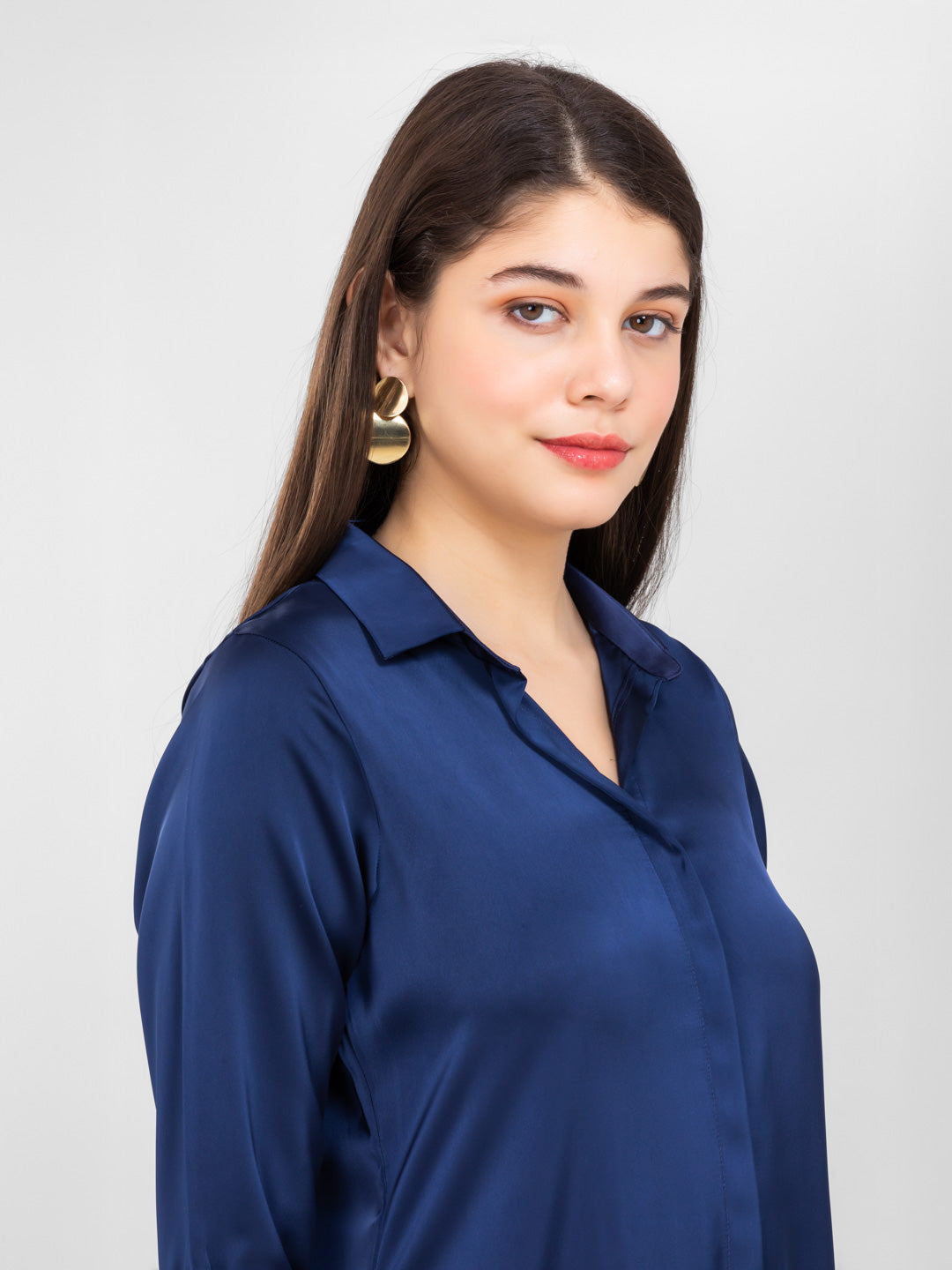 Navy Blue Satin Shirt Dress