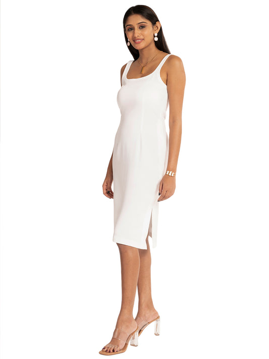White Wide Neck Dress