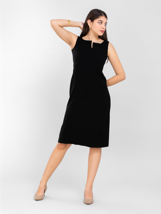D'Almirah Black Dress with Cut-Out Neck & Back Slit