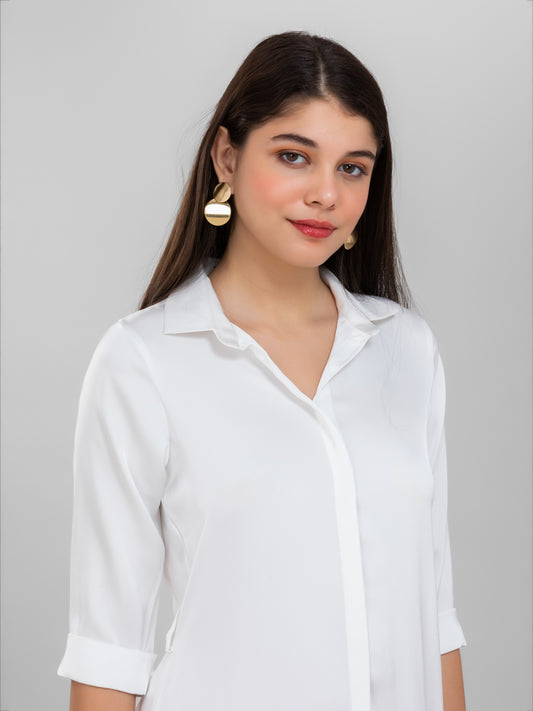 Pearl White Satin Shirt Dress