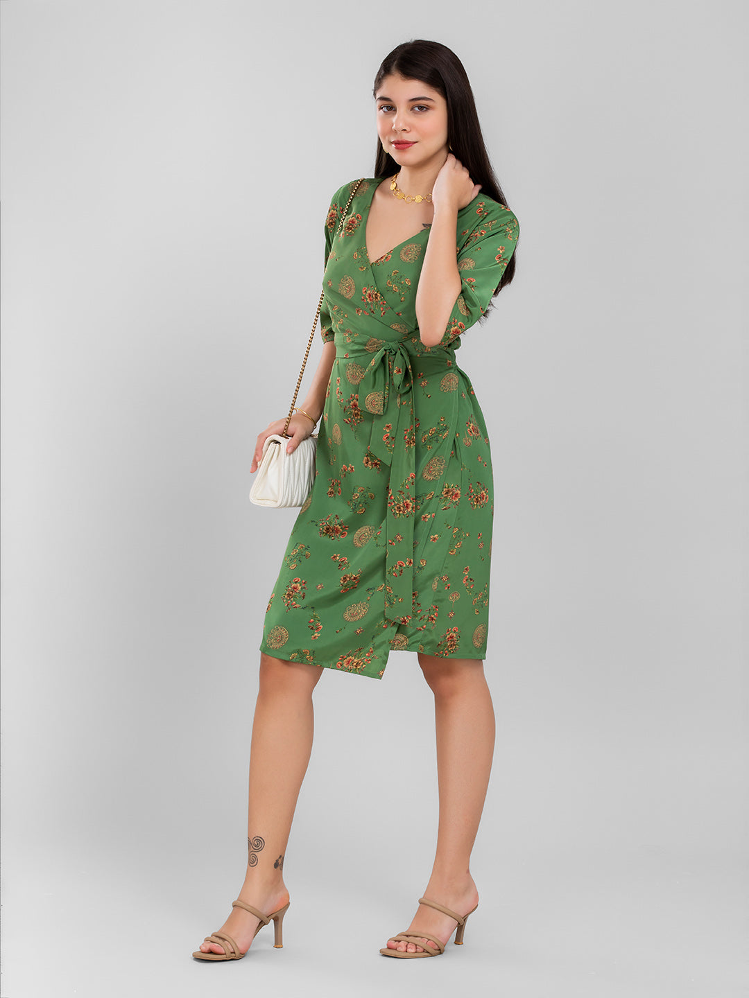 Green Floral Summer Wrap Dress