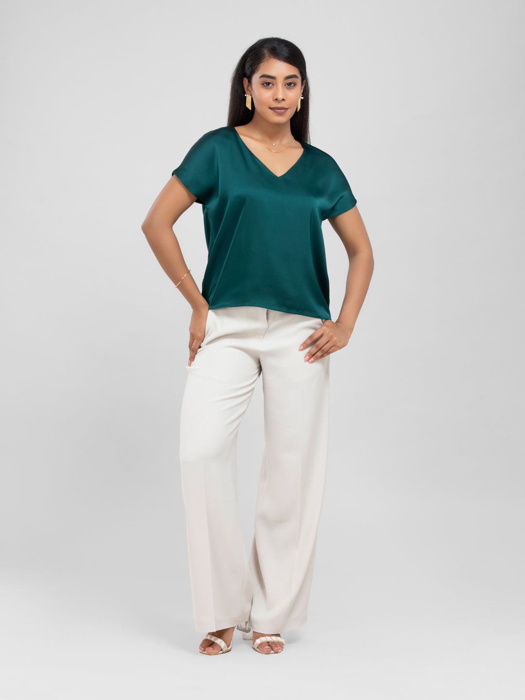 Emerald Green Satin Short Sleeve Top
