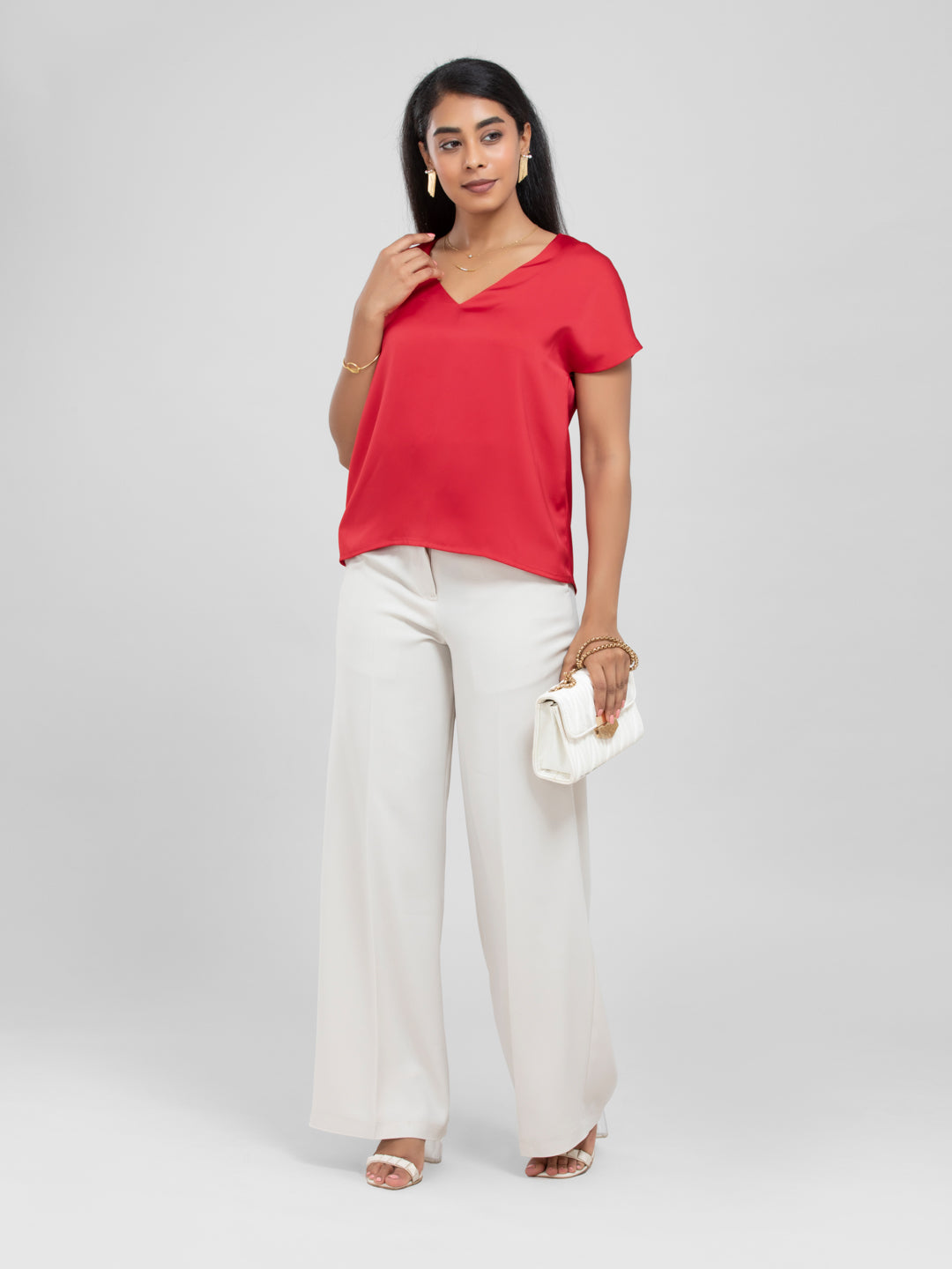 Red Satin Short Sleeve Top