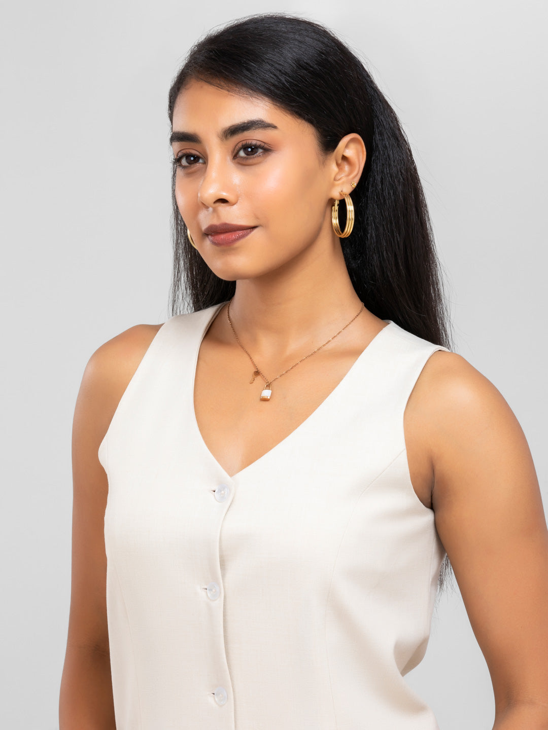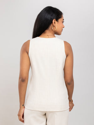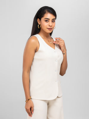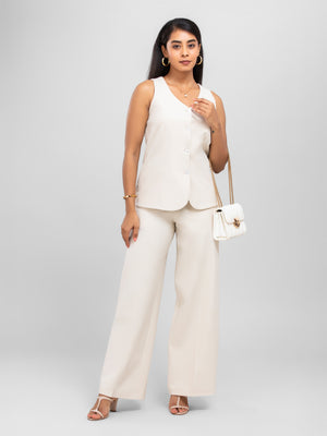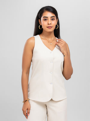 Women Beige V Neck Long Suit Waistcoat