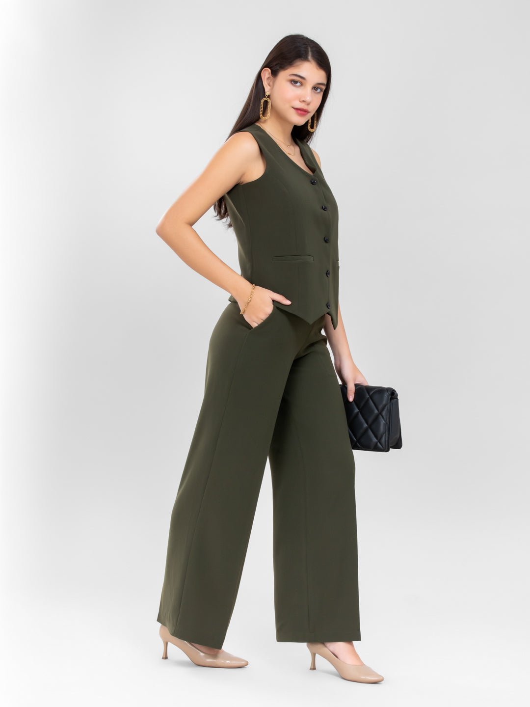 - Olive Green color for the fun yet chic appearance