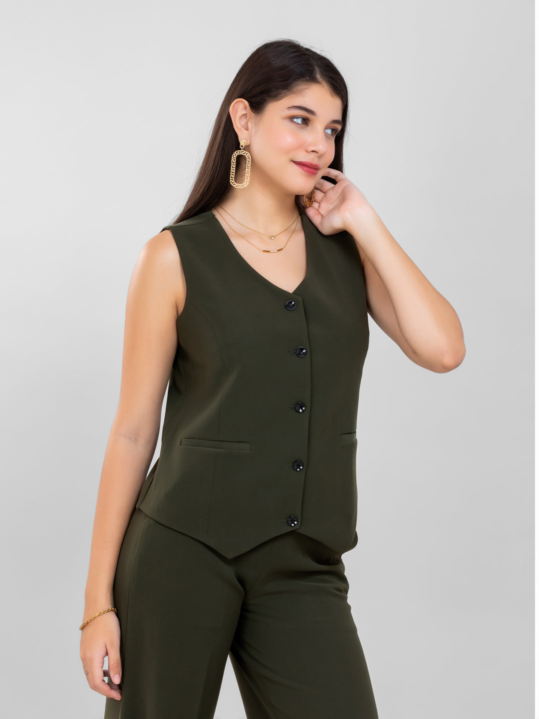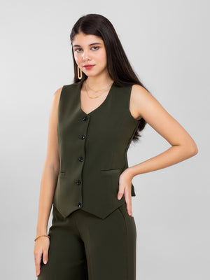 D'Almirah Olive Green Waist Coat